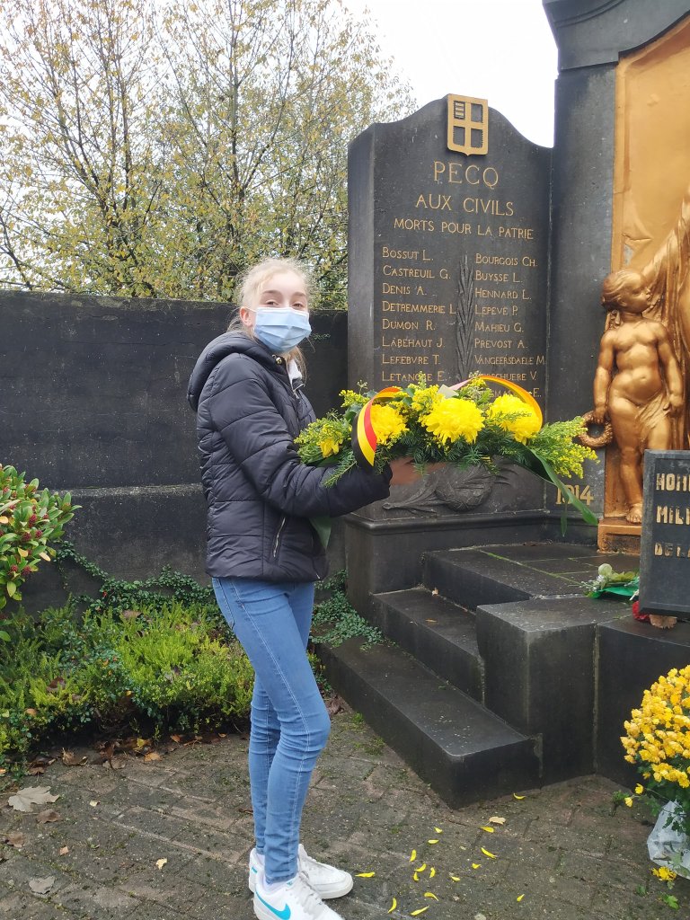 Interventions de Françoise Vansaingèle devant les monuments aux morts de l’entité.