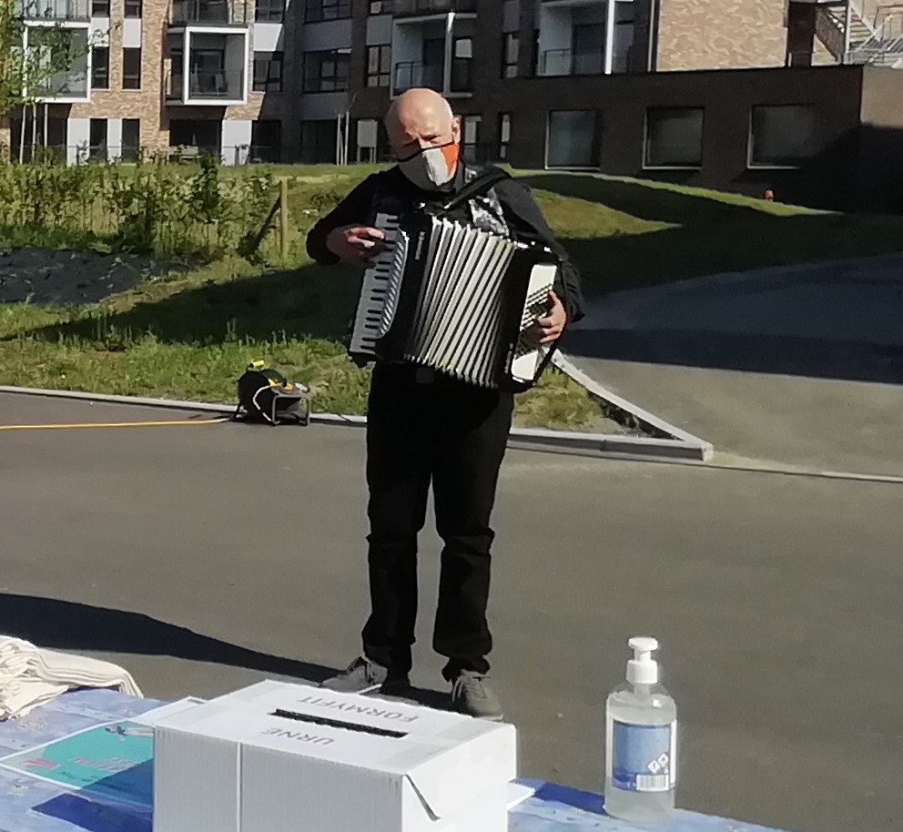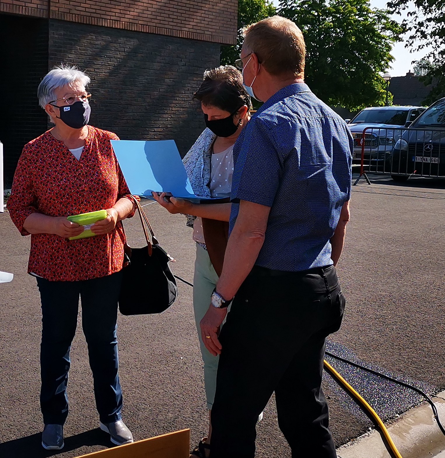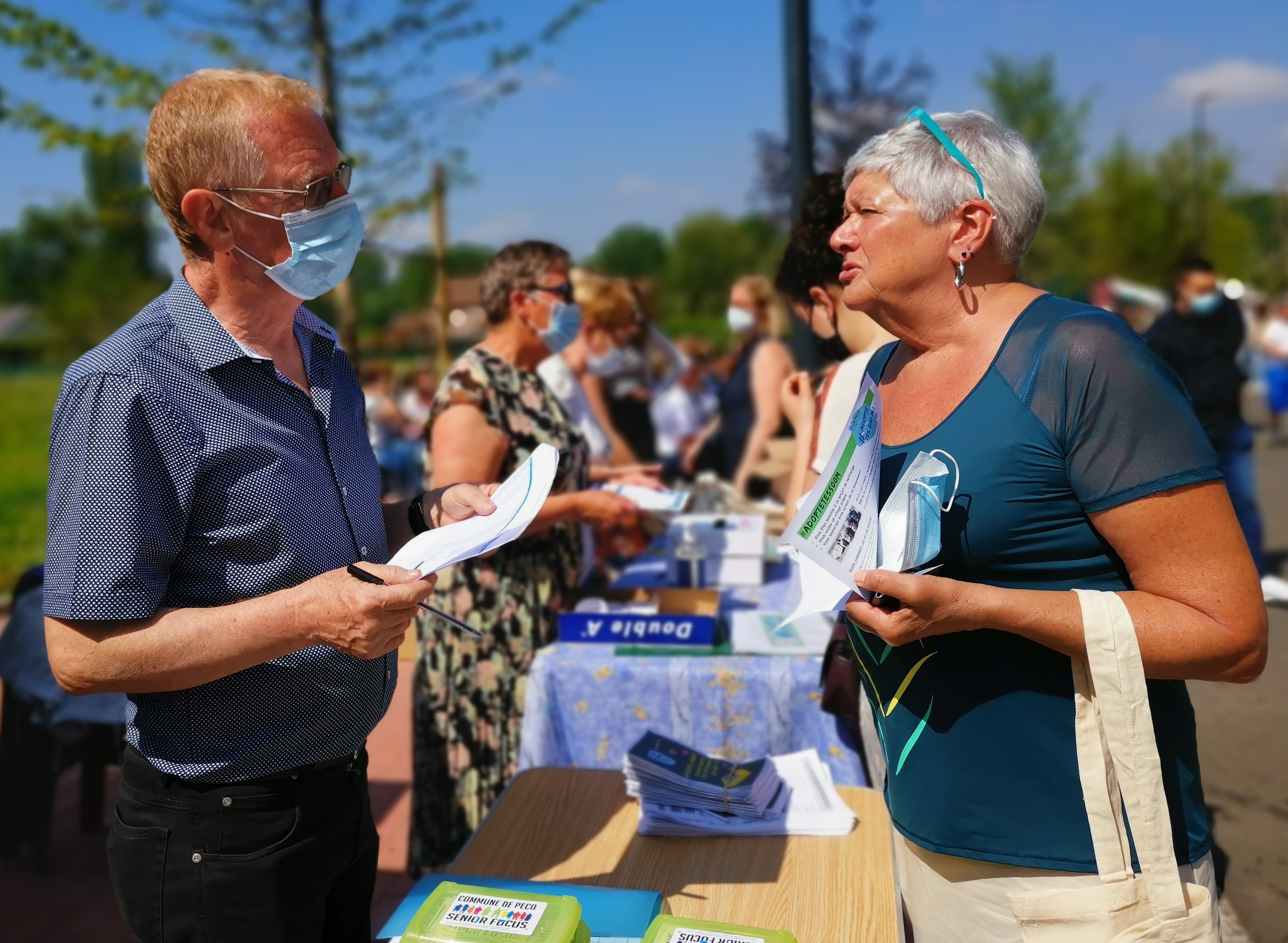 Une équipe de choc pour présenter « Senior focus » & #adoptetes500m lors du 1er Marché des Produits & des Artisans locaux à Hérinnes ce 30 mai 21.