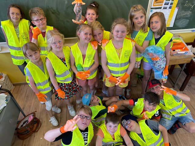 Les enfants de 4e primaire ont choisi les alentours de la Maison Communale comme espace à nettoyer.
