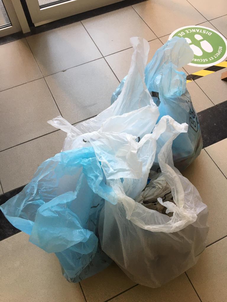 Nous avons ramassé 1 gros sac bleu et 1 gros sac blanc