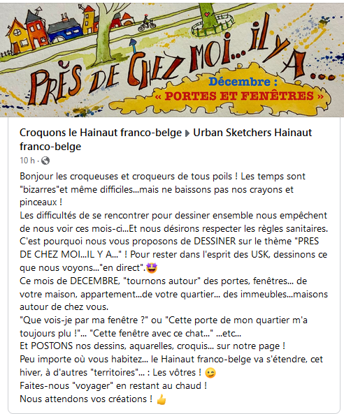 Les Urban Sketchers du Hainaut franco-belge vous proposent de « croquer » autour de vous …