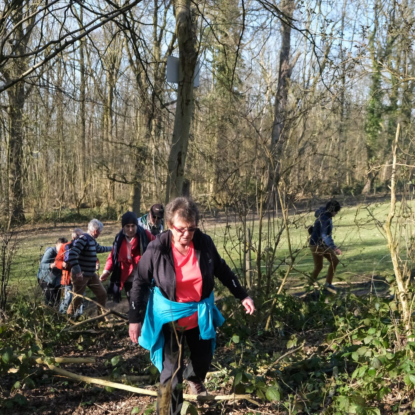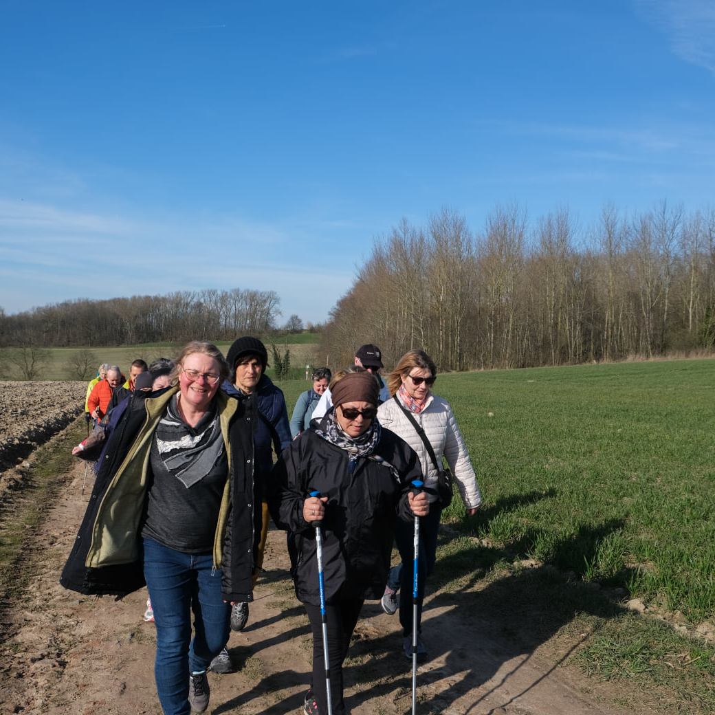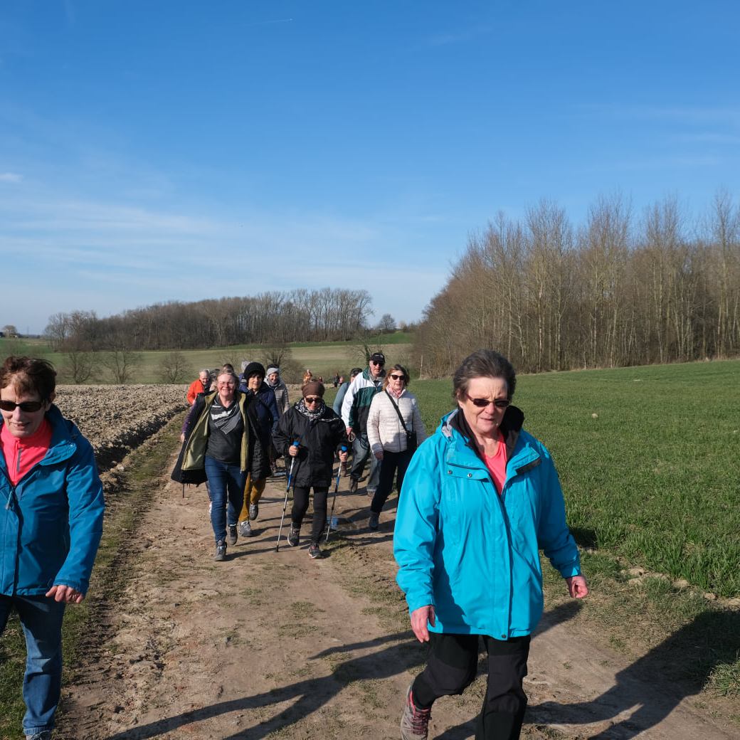 Sous le signe du soleil, d’une belle participation humaine (+ de 40 participants) et canine (j’ai pas compté …. ) …. de toutes tranches d’âge et de toutes tailles (pour nos amis les toutous), avec ou sans bâtons, avec ou sans couvre-chef … prêt(e)s à en découdre avec les stigmates de la récente tempête … sous la houlette de Martine L. (2.5), de Dominique P. (5), et de Luc F. (10)