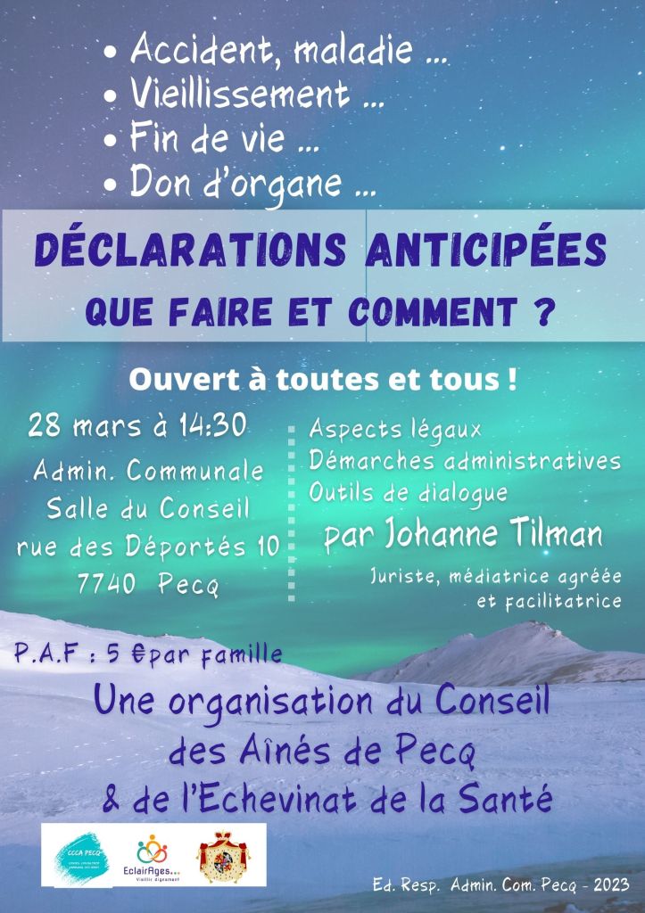 Une conférence proposée par le Conseil des Aînés & l’échevinat de la Santé de Pecq, en collaboration avec EclairAges