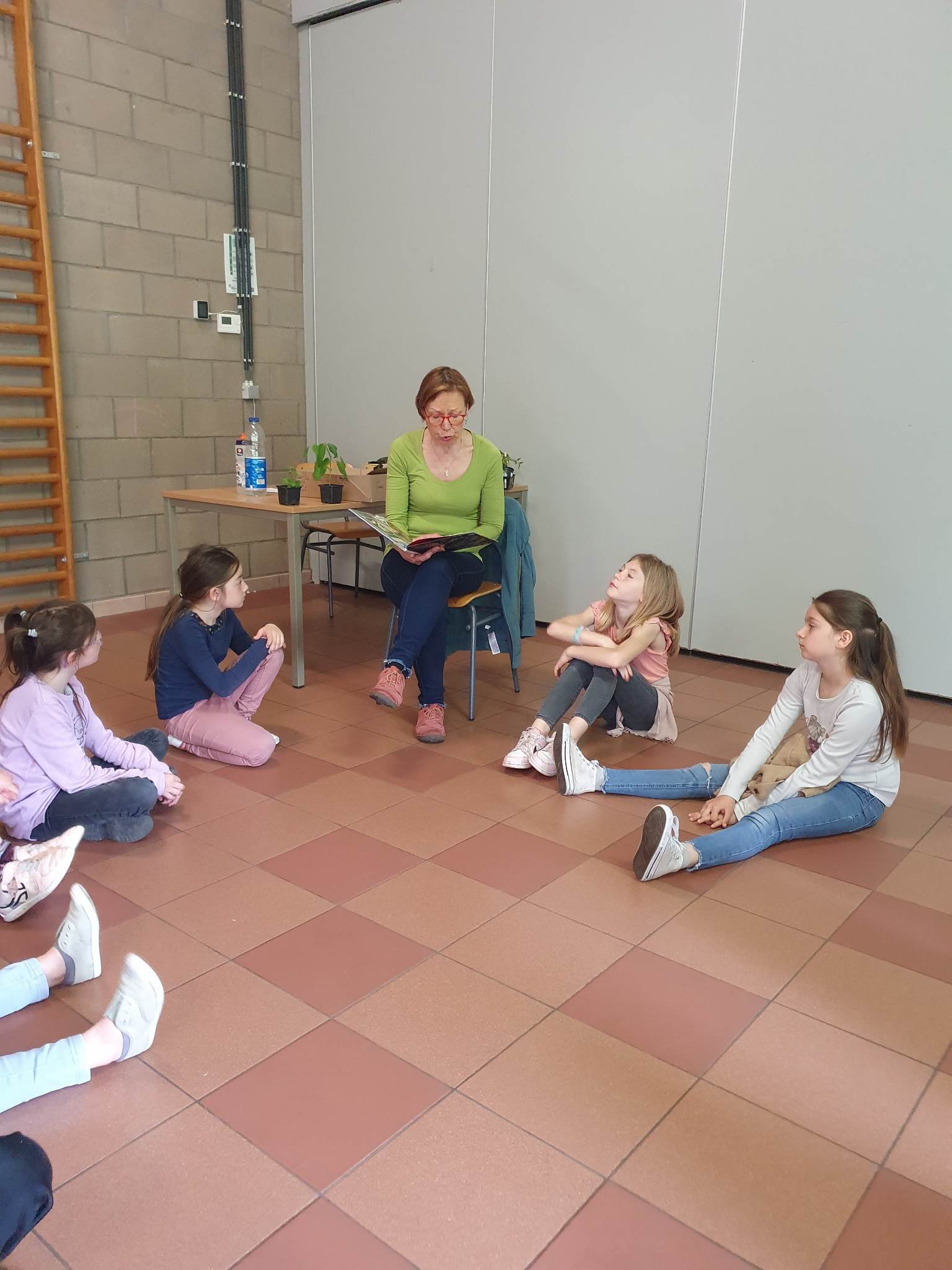 Anne (CCCA) & Françoise (Cultur’Pecq) sont des bénévoles passionnées … et elles partagent leurs passions avec les enfants de l’ATL (Accueil Temps Libre), pendant les vacances de printemps.. Belle synergie … Jolie collaboration. Lecture animée … et mise en application … les mains dans la terre … les enfants apprécient de repartir avec leur plantation …